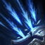 アッシュが指定方向に飛翔する氷の矢を放ち、最初に命中した敵チャンピオンに魔法ダメージを与え、飛距離に応じたスタン効果を付与します。氷の矢は当たると砕けて、それと同時に周囲の敵にも同様のダメージとパッシブのクリティカル時スロウ効果を与えます。