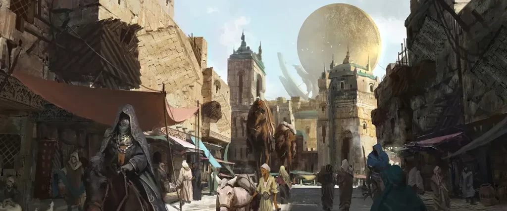 実体を取り戻し始めたアジールはよろめきながら廃墟を彷徨い、背中に短剣による裏切りの傷を受けた女の死体を発見した。女が誰なのかは分からなかったが、その容貌には彼の血筋の微かな名残が見て取れた。アジールは帝国や権力への執着を忘れ、このシュリーマの血統を受け継いだ娘を抱え上げると、かつて「暁のオアシス」があった場所まで運んだ。オアシスは枯れて干上がっていたが、アジールが一歩踏み出すごとに、透き通った水が岩の盆地を満たし始めた。女の体をオアシスの癒しの水に浸すと、血は洗い流され、剣が彼女を貫いた場所には微かな傷が残るのみとなった。