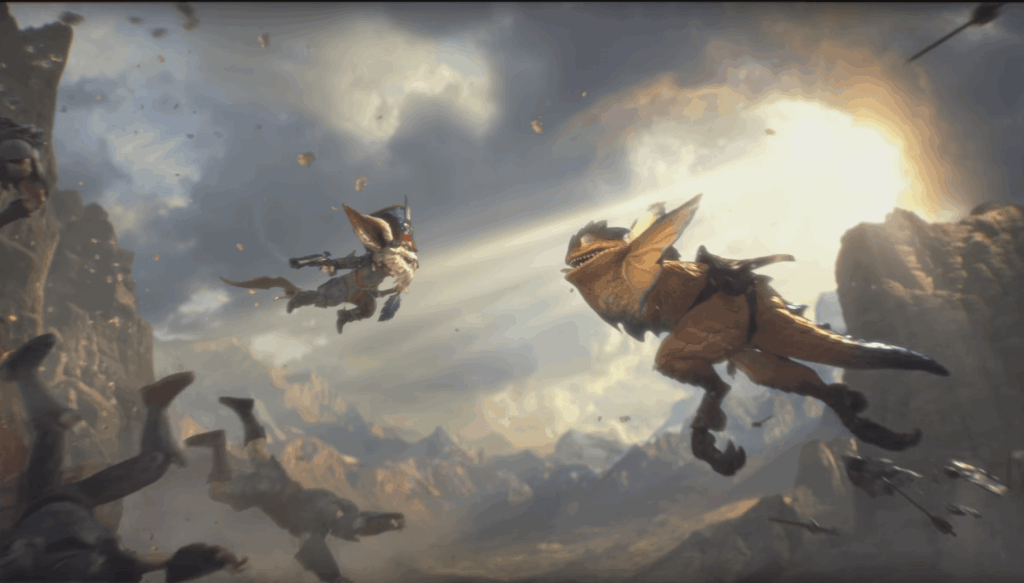 カラー短編「ドラカロップスのいるところ(Where the Drakalops Roam)」は、北方の大草原(ノクサス領)での騒々しい“日常”を映し、スカール(=ドラカロップス)という騎獣の気まぐれさ、過酷な原野、そして与太話がいつの間にか“史実”になるノクサスの風土を描きます。